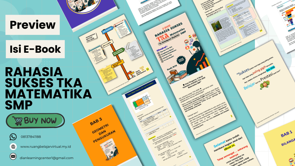 E-book panduan lengkap, ringkas, dan mudah dipahami : Tips dan Trik-Ringakasan Materi-soal dan Pembahasan-simulasi-Tryout TKA Matematika Kelas 9