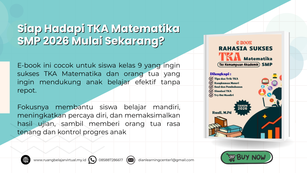 E-book panduan lengkap, ringkas, dan mudah dipahami dari materi-soal-tips-simulasi TKA Matematika Kelas 9